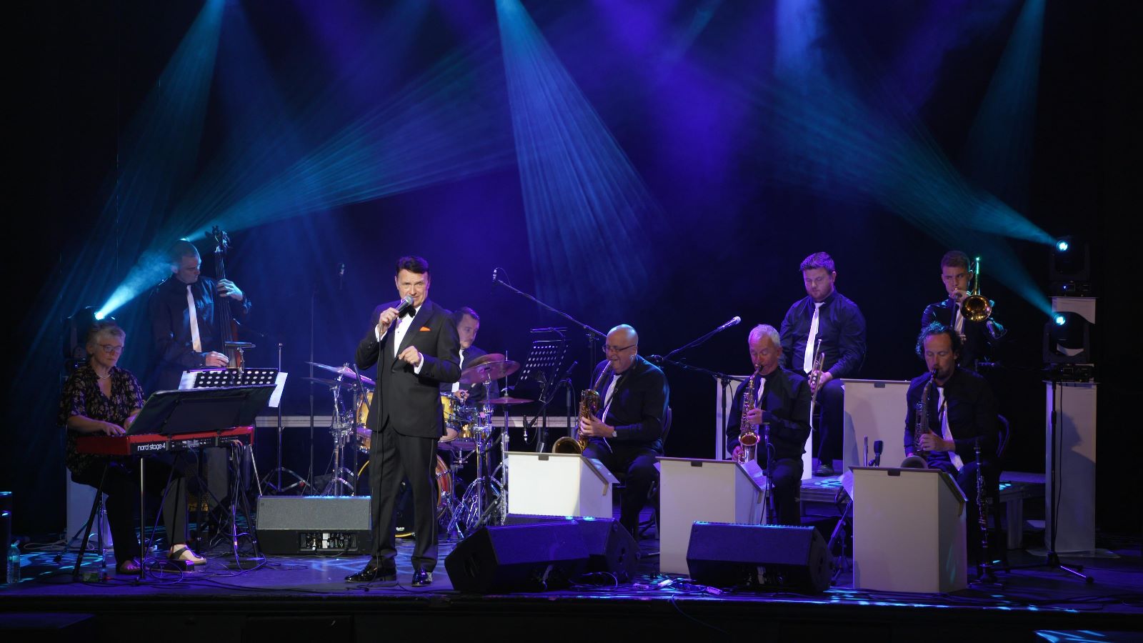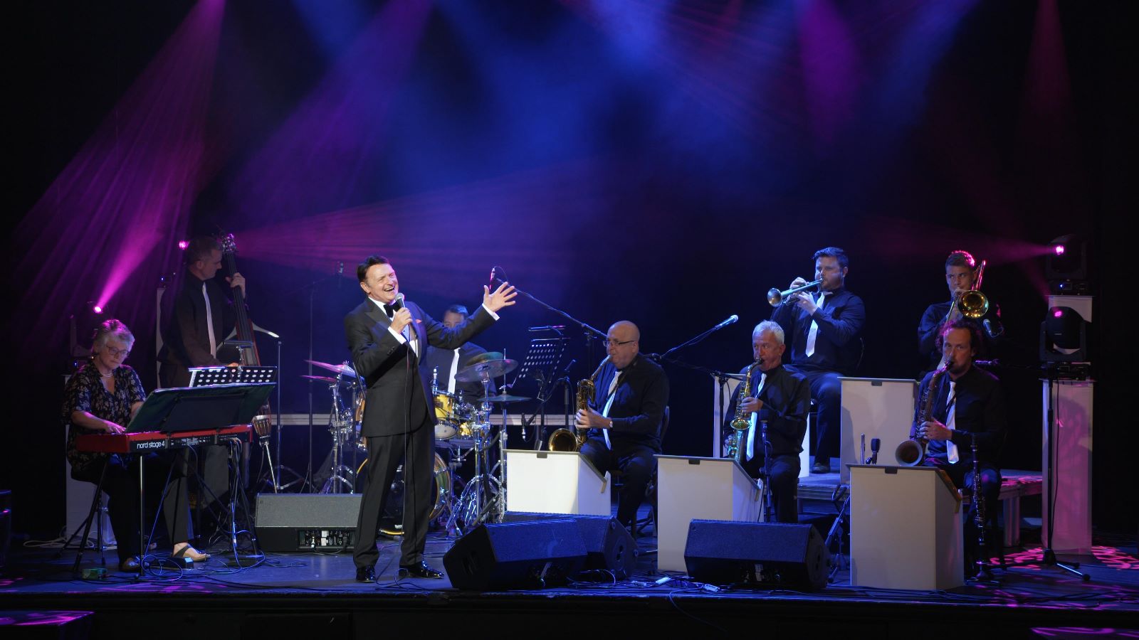 Yes, is the short answer. I can appear with my 8-piece band “The Spirit of Swing”. The price for this option is on application. The band line up can be augmented to the full 16-piece if required. Technical rider can be discussed once the fee has been agreed.